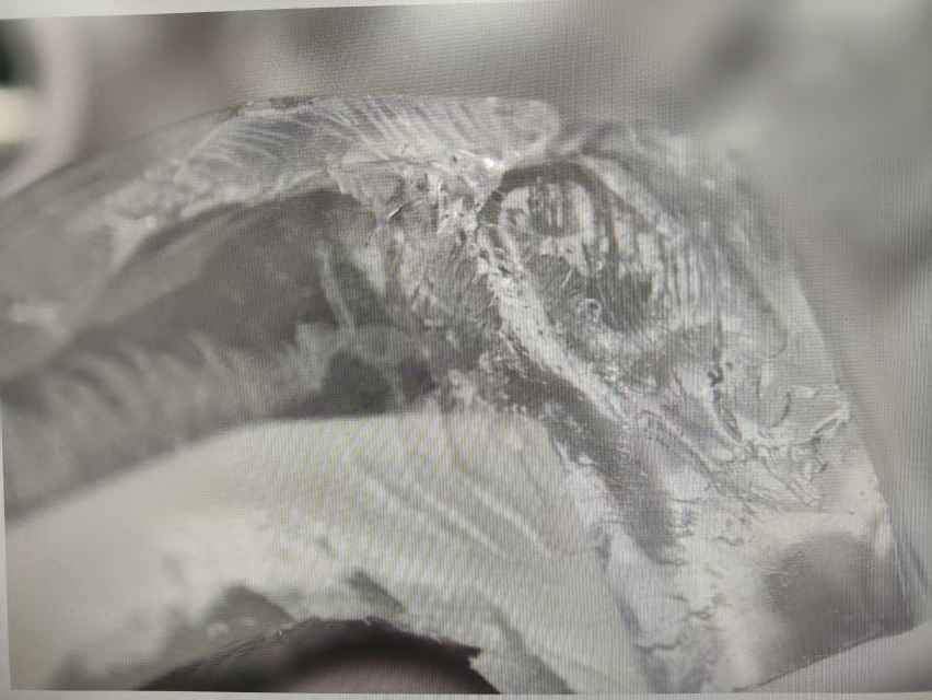 求助:PC ,PCABS 双色注塑,PC 层发生开裂,求大佬帮忙看图,判断开裂方向和机理。透明的是PC ,不透明的是PCABS 。 发自小木虫手机客户端 |