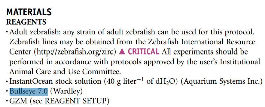 大家有谁知道Bullseye7.0是什么缓冲液吗,我目前要制备无菌斑马鱼,方法是按照2008年的一篇经典文献走的,但这个缓冲液根本找不到其他信息,不知道实验室常用的Tris-HCl 缓冲液能不能代替o(╥﹏╥)o |