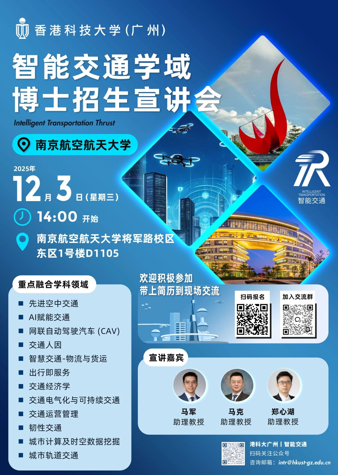 香港科技大学广州|智能交通学域博士招生宣讲会—南京航空航天大学专场