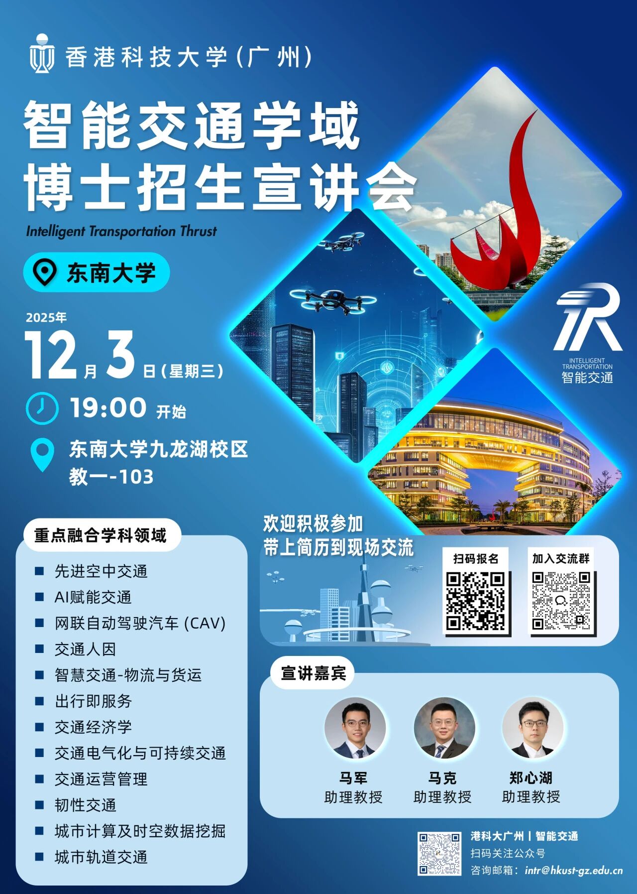 香港科技大学广州|智能交通学域博士招生宣讲会—东南大学专场