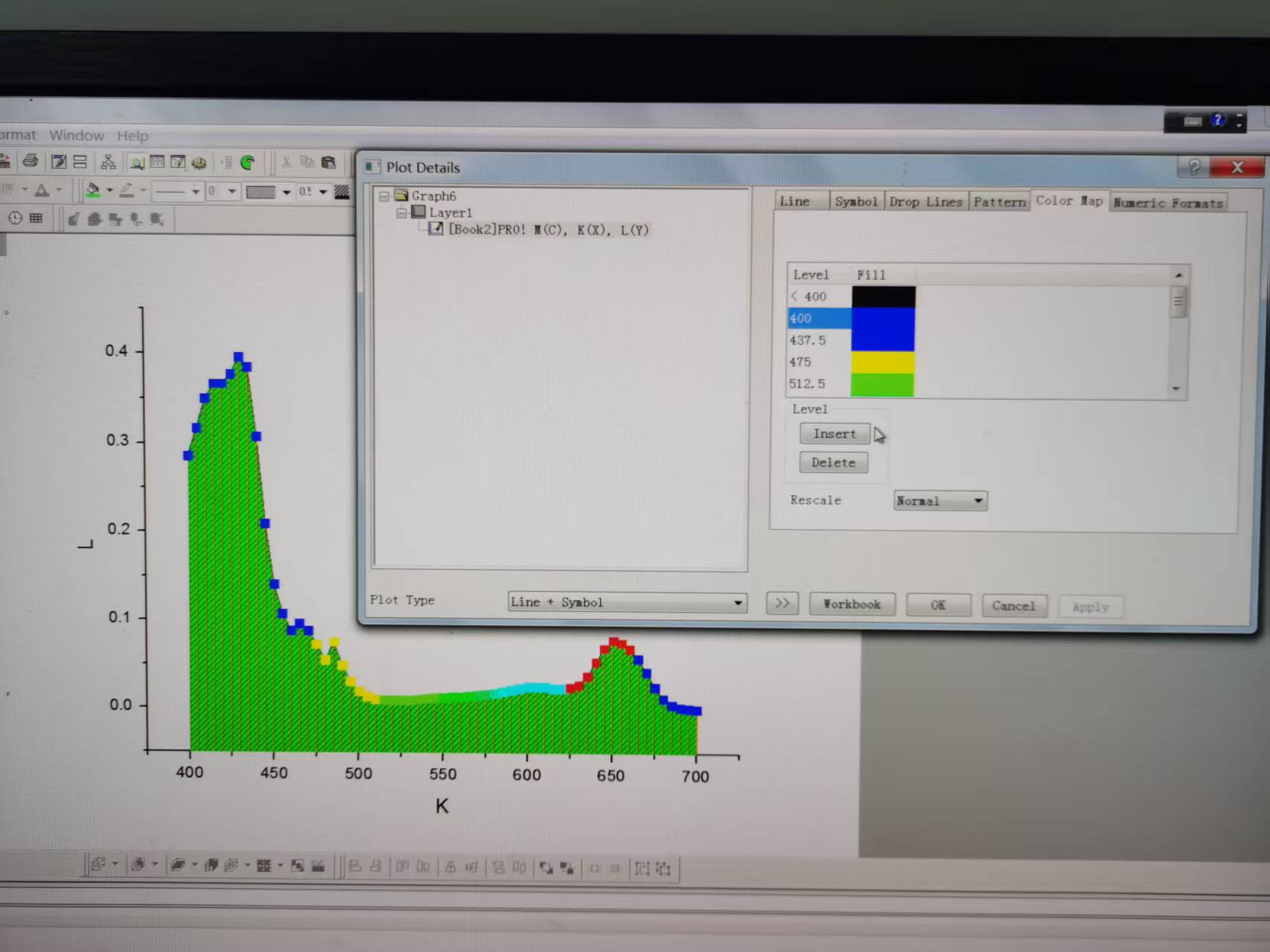 请高手指点:用orgin怎样绘制随x轴渐变色,多种颜色波长对应x轴坐标。
