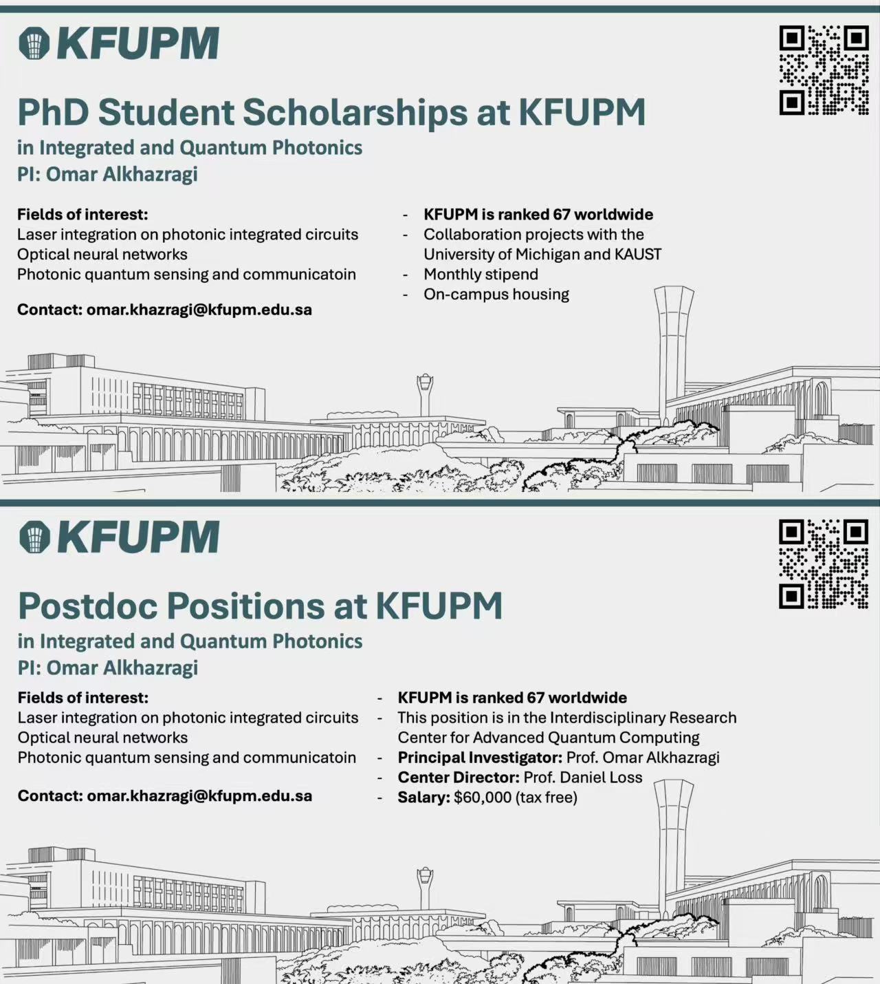 【KFUPM 博士与博士后招聘】集成光子学与量子光子学方向