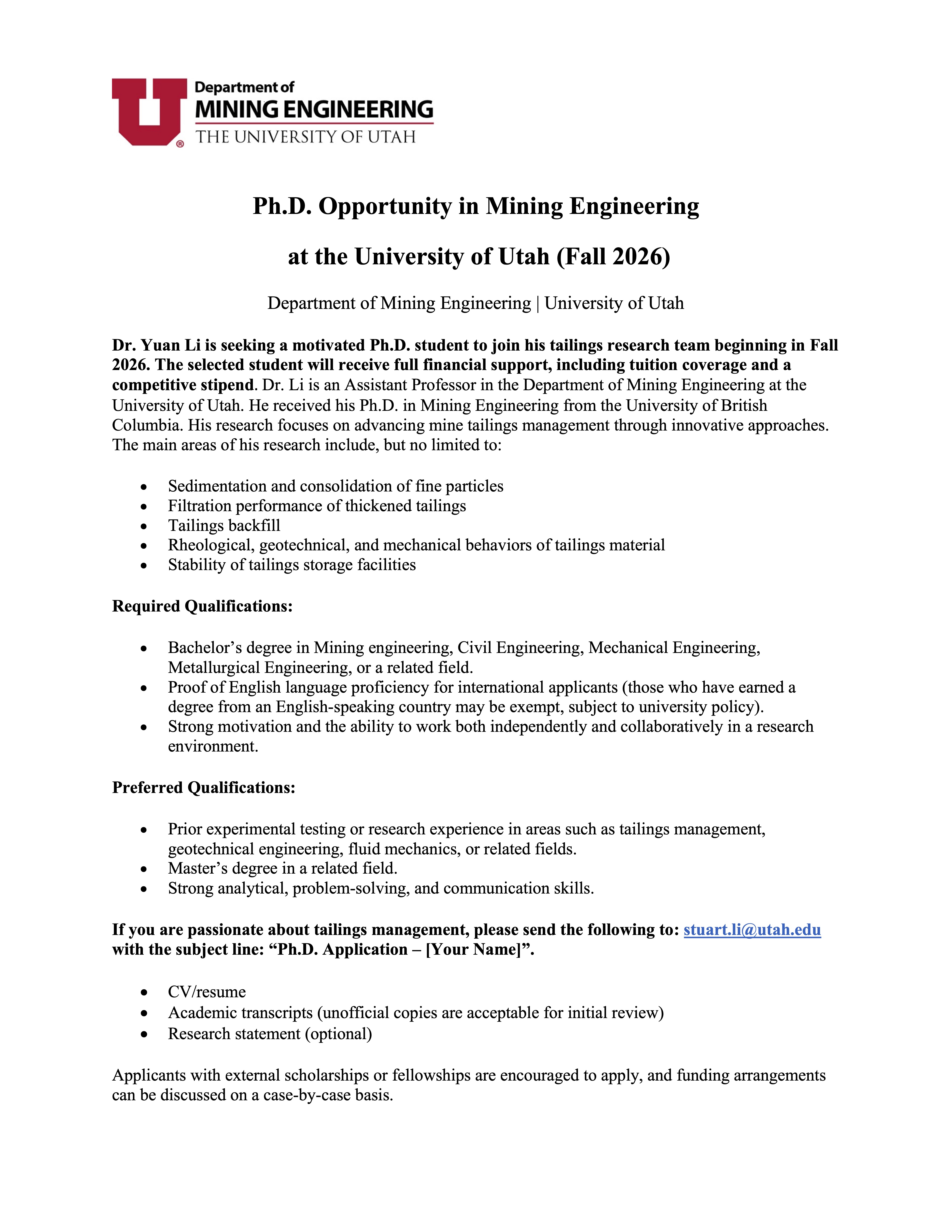 美国犹他大学-采矿工程系-全奖硕士/博士招生
