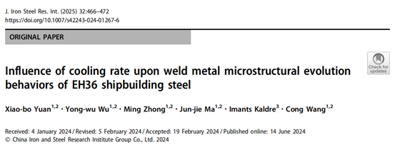 冷却速率对EH36船用钢焊缝金属组织演变行为的影响
