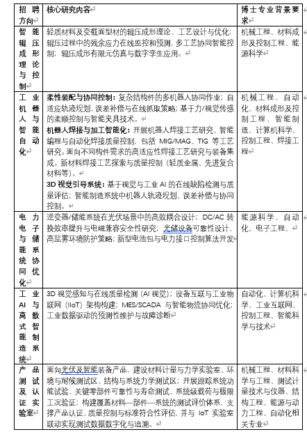 sample text 清源科技-电子科技大学-深思有形(深圳)科技有限公司工业人工智能与智能制造联合实验室(以下简称“联合实验室”)是为积极响应国家在能源领域的重大技术需求而建立的产学研创示范平台。我们致力于通过科技发展清洁能源发电,提高绿色电力比例,助力实现碳中和。该联合实验室由全球领先的智慧光伏与数字能源解决方案提供商清源科技股份有限公司(股票代码:603628)、在人工智能和智能制造领域拥有顶尖科研实力的电子科技大学(深圳)高等研究院,以及专注于辊压领域工业自动化与智能化的深思有形(深圳)科技有限公司三方联合共建。 二、招聘需求 博士后 三、要求专业方向与核心研究内容 我们诚邀在金属成形(辊压、冲压)、工业自动化、数字化平台、光伏跟踪与储能嵌入式系统设计等领域具备扎实理论基础和实践经验的博士人才加入。 四、薪资待遇与支持条件 联合实验室将提供有竞争力的薪酬、优良的科研和生活条件,确保人才能够潜心研究。 薪酬待遇:提供 30╟50万元/年综合年薪(包含厦门博士后在站补贴),五险一金,同等享受公司正式员工福利(带薪年假,住房,节假日福利)。 科研经费与设施: 独立科研经费支持,产业化试验平台及数值仿真平台,全面支持国家、省市科研项目申报包含自然科学基金、厦门市重大专项等。 人才津贴(以当年政府政策为准):留厦安家补贴最高100 m^2人才房,或者每月6000元租房补贴(5年):满足毕业时所在学校入选当年度国际知名的三大世界大学排名前200名;毕业当年度所学专业入选教育部全国学科评估a+学科;本地“双一流”建设高校。 生活保障:协助申请人才公寓、租房补助。 请将个人简历、研究成果清单及代表性论文发送至指定邮箱,邮件主题请注明“应聘研究方向+专业名称+姓名”。发送至:zhuangjie@shensishape.com。 工作地点:厦门火炬高新区(翔安)产业区民安大道1001号、1003号、1005号、1007号、1009号。 |