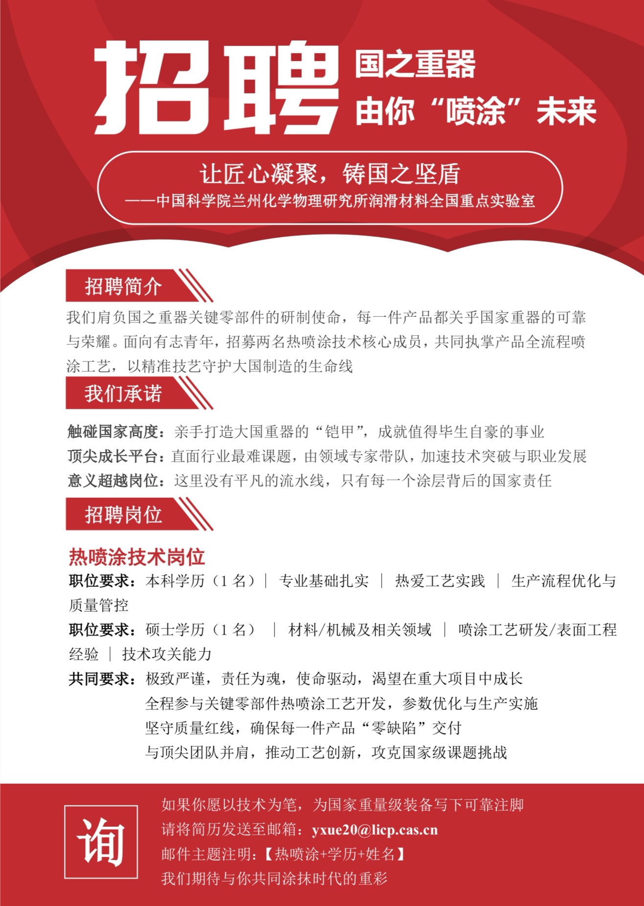 中国科学院兰州化学物理研究所热喷涂团队招聘+招生