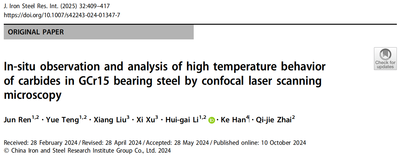 使用高温激光共聚焦显微镜对GCr15轴承钢中碳化物高温行为的原位观察与分析
