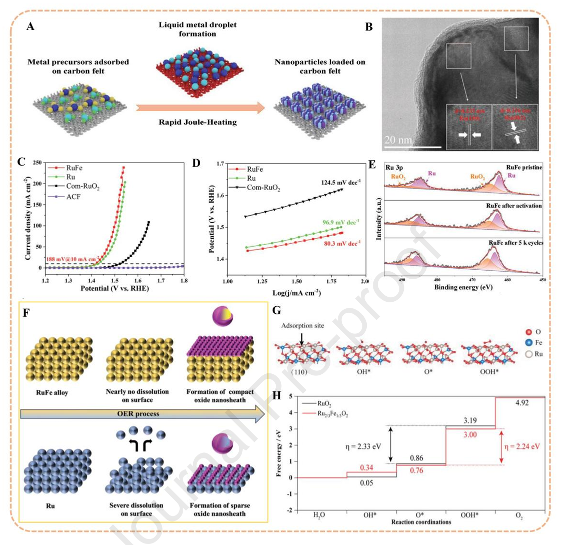 ½¹¶ú¼ÓÈÈÖÆ±¸µÄ´ß»¯¼ÁÔÚOER¹ý³ÌÖлᷢÉúÓÐÀûµÄ¶¯Ì¬±íÃæÖØ¹¹£¬ÐγÉÕæÕýµÄ¸ß»îÐÔÎȶ¨Ïà¡£ÒÔRuFe@CF´ß»¯¼ÁΪÀý£¬ÔÚËáÐÔOER¹ý³ÌÖУ¬Æä±íÃæµÄRu⁰»áת±äΪRu⁴⁺£¬ÐγÉÒ»²ã¾ßÓб£»¤×÷ÓõÄRuO₂»îÐԲ㡣[70][75] Óë´¿RuÏà±È£¬FeµÄ¼ÓÈëÓÐЧÒÖÖÆÁË´ß»¯¼Á±íÃæµÄÈܽ⣬ͨ¹ýÔ­Î»ÖØ¹¹ÐγɵÄÎȶ¨Ñõ»¯Îï²ã¼«´óµØÔöÇ¿ÁË´ß»¯¼ÁµÄ³¤ÆÚÔËÐÐÎȶ¨ÐÔºÍÄÍÓÃÐÔ[70]¡£
