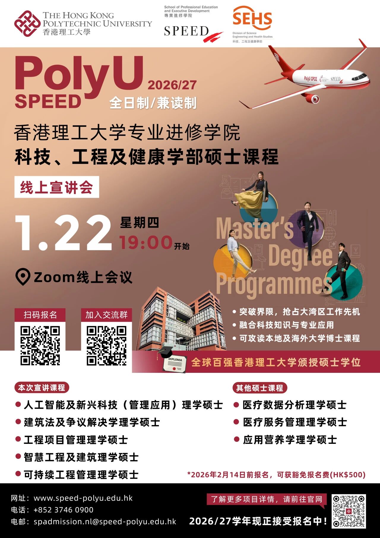 ÆÕ±¾Éú¸£Àû£¡Ïã¸ÛÀí¹¤´óѧSPEEDѧԺÏßÉÏÐû½²»áԤԼͨµÀ¿ªÆô£¡£¡Ö±Ãæ½ÌÊÚ£¬Ëø¶¨Â¼È¡Ï¯Î»£¡ 🕙ʱ¼ä:2026Äê1ÔÂ22ÈÕ19:00 🏠µØµã£ºÏßÉÏÐû½²»á ±¨ÃûÁ´½Ó£ºhttps://www.wjx.top/vm/m9oRxRm.aspx# Ðû½²»áÏêÇ飺https://mp.weixin.qq.com/s/utGNp18x2nhVHGsqbIUdmA 🌟 QSÊÀ½ç´óѧÅÅÃû54ÃûУ£¬Ñ§ÀúÈ«ÇòͨÐÐ 💼 Ö°Òµµ¼Ïò¿Î³Ì£¬Ö±Í¨ÐÐÒµÃûÆó 🏙️ ÓÅÖÊУ԰×ÊÔ´£¬ÈÚÈë¹ú¼Ê¶¼»á • ÓïÑÔÒªÇó£ºÑÅ˼½öÐè 6.0£¬¿ÉÉêÇëÄÚ²â»íÃâ • ³É¼¨ÒªÇó£ºÆÕͨ±¾¿Æ¼´¿ÉÉêÇ룡ÎÞÌØ±ð¼¨µãÒªÇó£¬ÃæÊÔÔñÓżȡ£¡ • ¾ÍÒµÄÜ´ò£º2024 ½ì¾ÍÒµÂÊ 95.8%£¬Æ½¾ùÆðн 28600 ¸ÛÔª / Ô£¬³¬¸ßÄÚÍÆ³É¹¦ÂÊ • ÉêÇëÓŻݣº2026Äê2ÔÂ14ÈÕǰ±¨Ãû¿É»ñ»íÃⱨÃû·Ñ • ͬ²½ÕÐļ£ºSPEED ѧԺУ԰´óʹ»ðÈȱ¨ÃûÖУ¬ÏíÒ»¶ÔÒ»ÉêÇ븨µ¼¡¢ÊµÏ°ÄÚÍÆµÈ¸£Àû£¨±¨ÃûÁ´½Ó£ºhttps://www.wjx.top/vm/mBEbg6R.aspx£© • ÕÐÉú¶ÔÏó£º ³ÏÑûÓÐÈ˹¤ÖÇÄÜ¡¢¼ÆËã»ú¡¢Êýѧ¡¢ÎïÀí¡¢µç×Ó¡¢½¨Öþ¡¢¹¤³ÌµÈÏà¹ØÀí¹¤¿Æ±³¾°µÄ±¾¿Æ¼°Ë¶Ê¿ÔÚ¶ÁѧÉú¡¢Ó¦½ì±ÏÒµÉú¼°×¨ÒµÈËÊ¿±¨Ãû²ÎÓ룡 |