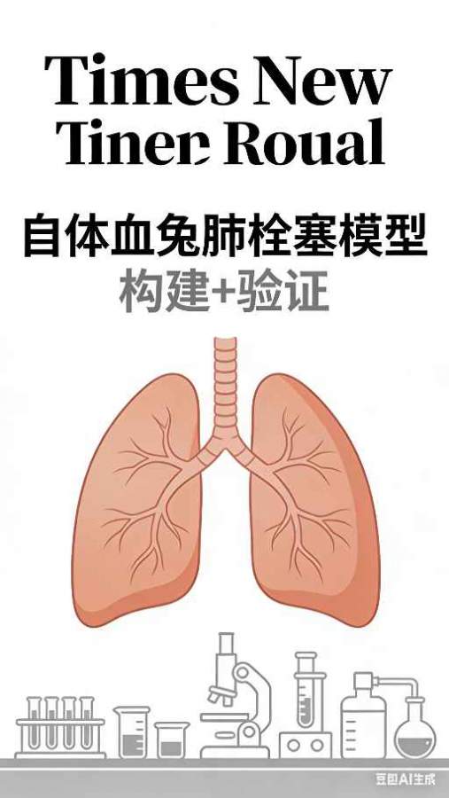1.?实验准备:实验兔经麻醉处理后,取仰卧位固定,对操作部位备皮、常规消毒。 ? 2.?自体血栓制备:于耳缘动脉采血,静置待血液自然凝固,血凝块形成后以生理盐水轻柔冲洗备用。 ? 3.?肺栓塞模型建立:颈部正中线作2–3 cm纵行切口,钝性分离组织暴露右侧颈外静脉并预置结扎线;结扎静脉远心端,于血管壁剪“V”形小口,插入经肝素盐水预充的导管,松开近心端结扎线并固定导管;将制备好的血栓吸入注射器,经导管缓慢注入,随后快速冲管,确保栓子顺利进入血液循环。 模型验证标准 ??病理学验证:解剖可见肺表面点片状出血,肺动脉管腔内见血栓;镜下观察到肺小血管内血栓形成,伴炎性细胞浸润。 ??生理指标验证:模型兔出现呼吸急促、心率加快等典型肺栓塞症状,肺动脉压指标呈显著升高。 发自小木虫手机客户端 |