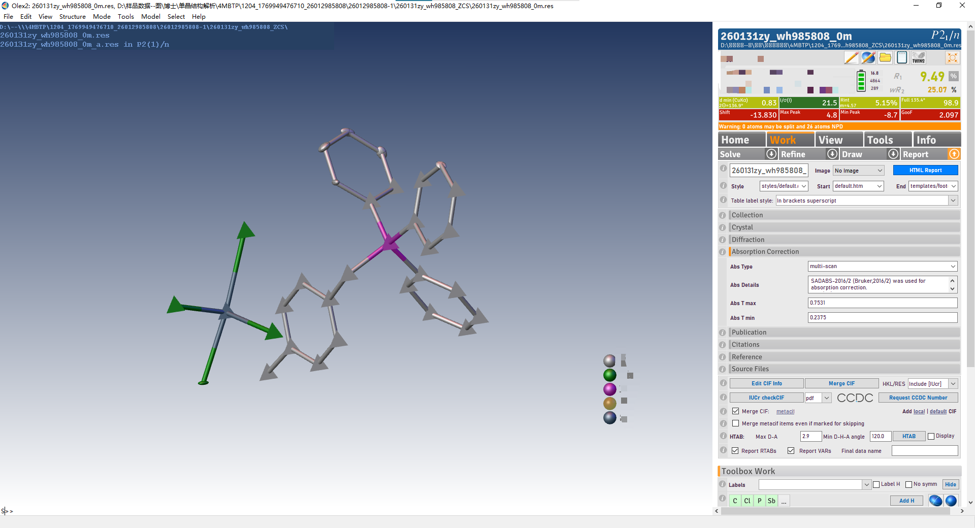 求助单晶结构解析,原子非正定