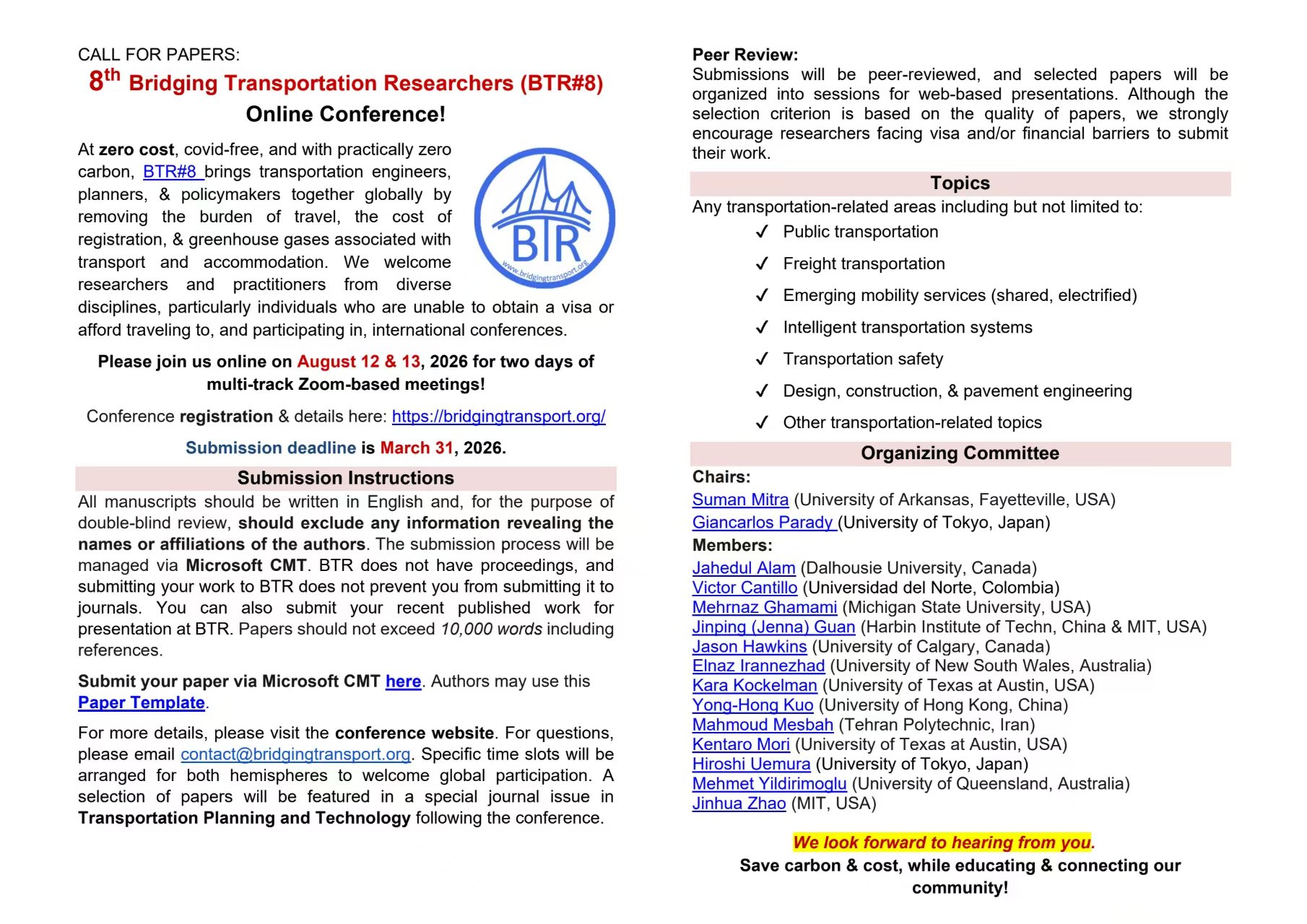 8th Bridging Transportation Researchers (BTR#8) ÏßÉϹú¼Ê»áÒéÕ÷¸å£¨½Ø¸å2026.3.31£