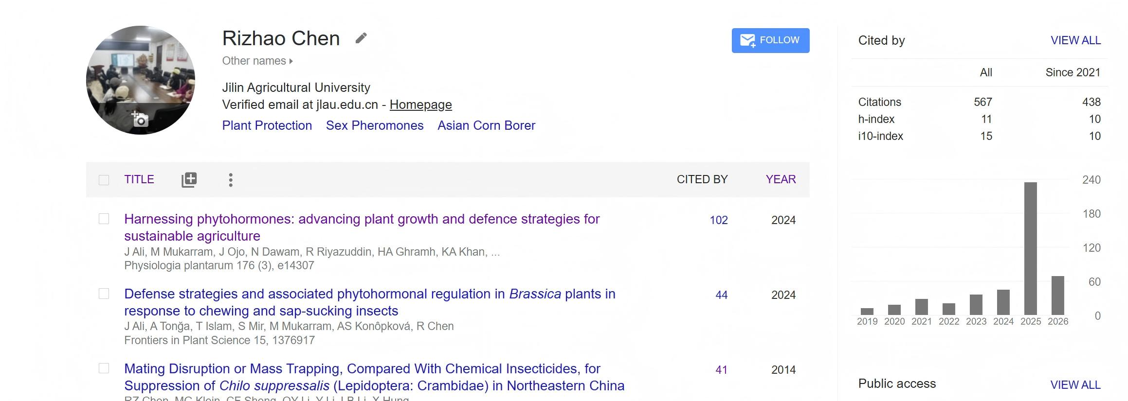 吉林农业大学-植物保护-农业害虫-性信息素及昆虫行为方向,招收博士研究生一名。 陈老师致力于开展昆虫行为学在内的各项研究,与国外专家开展长期合作,在国际刊物上发表多篇研究论文。希望招收对科学研究感兴趣,淡泊名利,愿意从 事科学研究、喜欢发表文章,渴望学以致用,喜欢探索科学问题,喜欢解决科学问题的同学加入,与老师一起,真心实意的探索昆虫学的未知领域,造褔农业。 2026年春季招生名额一人,有化学基础的同学更适合。有兴趣的同学,可以下载附件,深入了解。https://scholar.google.com/citat ... p;user=hgj5IzYAAAAJ 注:不想搞科研,需要研究生学历充门面的同学,请不要联系。另外,老师科研经费和实验条件有限,害怕吃苦,惧怕挫折的同学勿入。联系邮箱:chenrizhao@jlau.edu.cn |