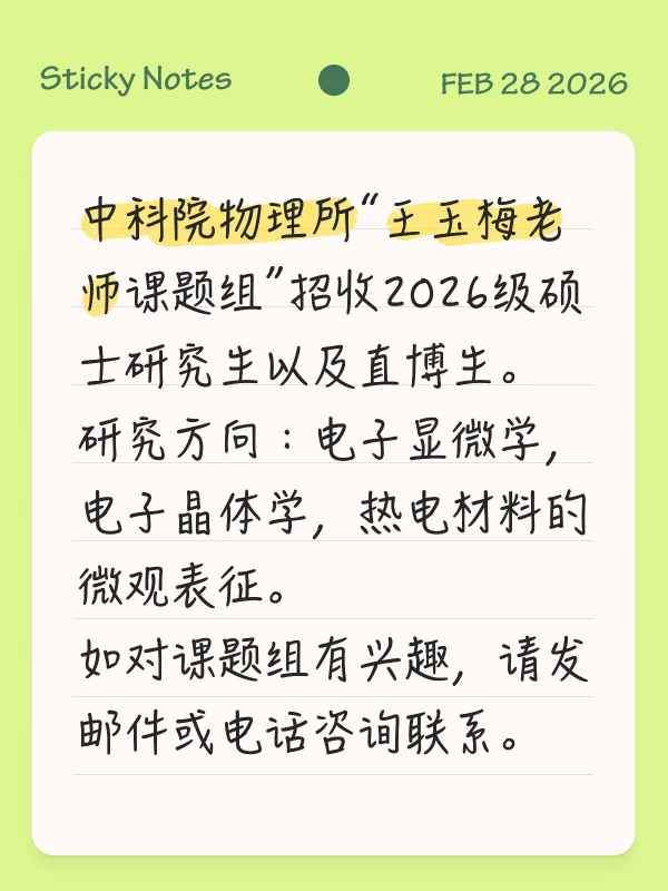 中科院物理所王玉梅老师课题组招收2026级硕士研究生