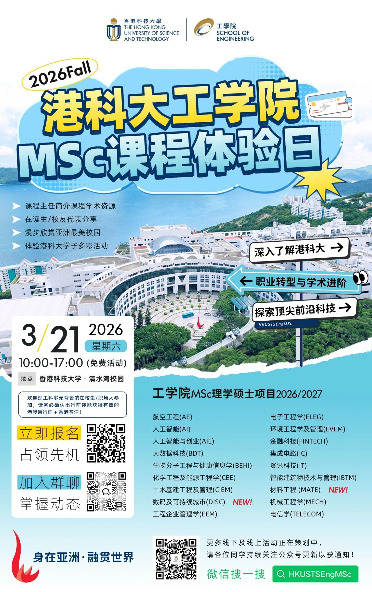 校园体验日----香港科技大学工学院理学硕士MSc课程专场