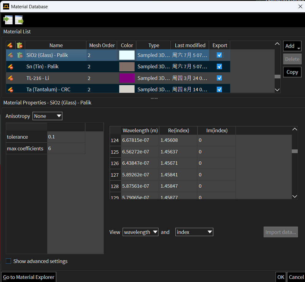 lumerical材料库里的材料折射率和仿真时使用的不一样