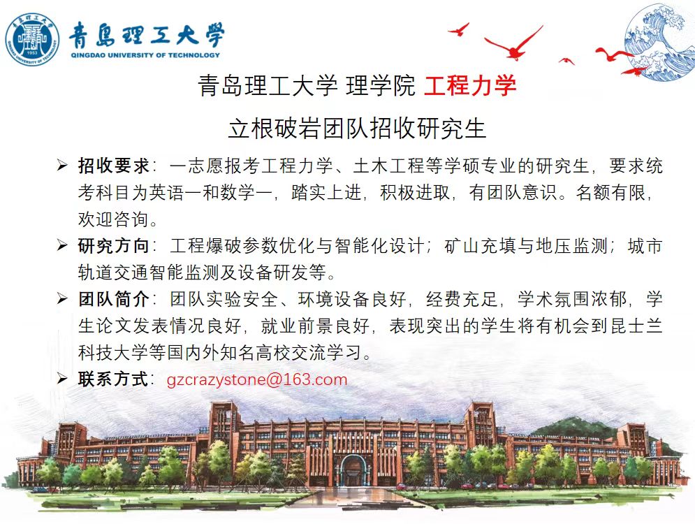 青岛理工大学理学院工程力学 立根破岩团队招收研究生