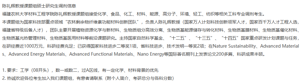 [考研] 344材料与化工调剂 +8 | 调剂上岸玘 2026-04-03 | 8/400 |