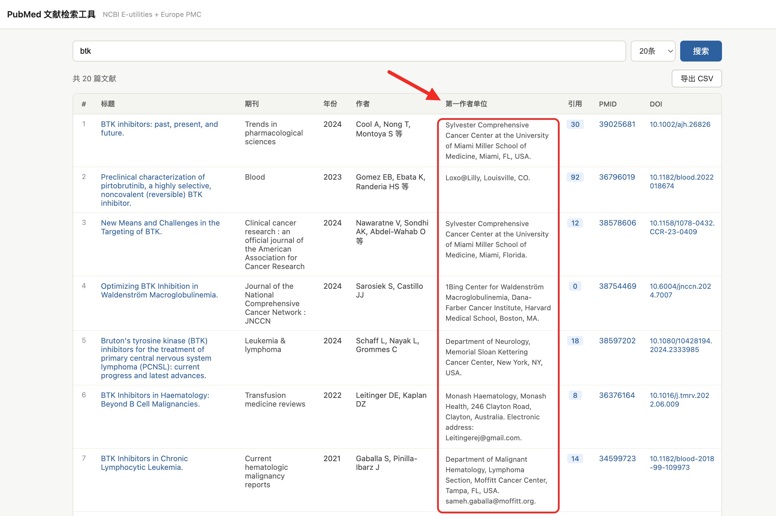 ai coding 给不会写代码的人带来了抓手 我借助它做了一个纯网页工具(单个 html 文件,不需要安装任何东西),核心功能:输入关键词批量拉取 pubmed 文献,自动显示标题、期刊、年份、作者、第一作者单位、引用次数、doi,一键导出 csv。 几个实际用途: ① 快速了解一个领域的主要参与者——导出近期高引文献,看第一作者单位哪些机构反复出现 ② 开题前判断领域热度走势,看是上升期还是趋于饱和 ③ 找潜在合作者或博后导师 ④ 审稿、写综述时快速梳理引用 技术实现:两个免费 api,不需要注册。ncbi e-utilities 搜索文献拿到 pmid,再批量拉取详情;europe pmc 补充引用次数。导出 csv 加 bom 头确保 excel 中文不乱码。整个工具约 200 行 html + js,无外部依赖。 API说明: https://www.ncbi.nlm.nih.gov/books/NBK25497/ 不懂代码也没关系,把代码片段丢给 chatgpt、claude 等大模型,说清楚你想要什么改动,它能直接给你改好的完整代码。 --- 批量检索之外,读文献时还需要快速判断一篇文章值不值得读。 这是 【文献泡泡】 做的事,一个 chrome/edge 浏览器扩展: 在 pubmed、google scholar、知网等 20+ 学术网站自动显示影响因子、jcr 分区、中科院分区(内置 60 种排名),搜索结果一键 ai 综述,文章详情页一键思维导图,支持按期刊排名或引用次数重新排序。 两个工具配合用效果很好:先批量导出数据、找高引文章,再用文献泡泡边浏览边筛选解读。 |