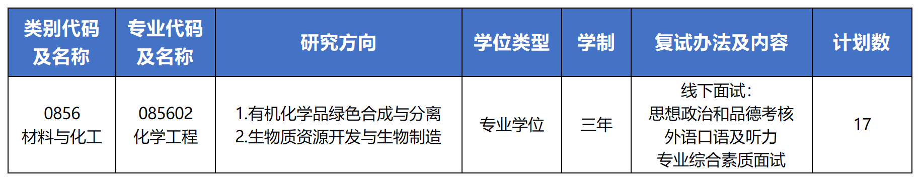 调剂基本条件 (一)符合《浙大宁波理工学院生物与化学工程学院2026年硕士研究生招生复试录取工作实施细则》要求。具体详见:https://yjszs.nbt.edu.cn/info/1018/1427.htm (二)调剂考生初试成绩(其中总成绩含加分)须符合第一志愿报考专业的全国初试成绩基本要求(A类考生),并符合调入专业的报考条件。 (三)原则上,调剂考生第一志愿专业与调入专业相同相近,或初试科目与调入专业初试科目相同相近。考生一志愿初试科目要求:科目二要求为201英语(一)或204英语(二),是否选考数学没有要求。 (四)学校接受所有考生调剂申请均通过教育部“全国硕士生招生复试调剂服务系统”(以下简称“调剂服务系统”)进行。 调剂考生一志愿专业要求 0702物理学,0703 化学,0710 生物学,0773材料科学与工程,0775计算机科学与技术,0776环境科学与工程,0777生物医学工程,0780药学,0805材料科学与工程,0806冶金工程,0807动力工程及工程热物理,0812计算机科学与技术,0817化学工程与技术,0820石油与天然气工程,0821纺织科学与工程,0822 轻工技术与工程,082803农业生物环境与能源工程,0829林业工程,0830环境科学与工程,0831生物医学工程,0832食品科学与工程,0836生物工程,0854电子信息,0856材料与化工,0857资源与环境,0860生物与医药,0907林学,0951农业,0954林业,0972食品科学与工程,1007药学,1055药学,1072生物医学工程 线下复试:复试时间为4月9日(如有改变再另行通知)。 学校地址:浙江省宁波市鄞州区钱湖南路1号浙大宁波理工学院。 温馨提示:除国家补助和学校奖助金外,团队还提供有吸引力的工作津贴。欢迎有调剂意向的同学于4月7日来学院实地考察并与意向导师交流,待正式录取后学院报销(高铁二等座或经济舱)往返交通费和住宿费(4月8和9日两晚,学院已提前预定了校内南苑e家宾馆),随时有志愿者接引入校。 联系方式 电话:0574-88130300,15888588106(代老师),微信号ddm15888588106 邮箱:ddm@nbt.edu.cn 线上:QQ群687514076 线下:浙大宁波理工学院生物与化学工程学院研究生管理办公室ND126(浙江省宁波市鄞州区钱湖南路1号) 邮编:315100 学院官网:https://swzy.nbt.edu.cn/ |