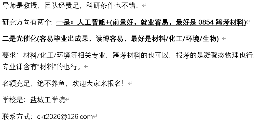 招收材料/化工/环境或者计算机/0854跨考材料相关调剂