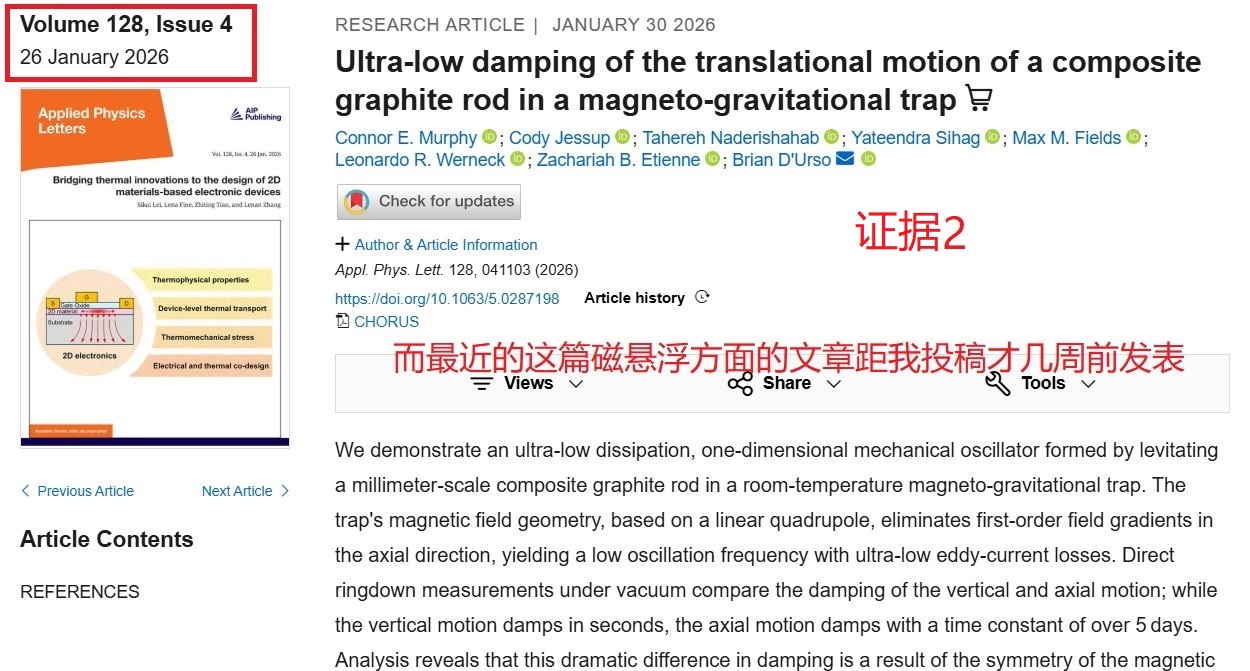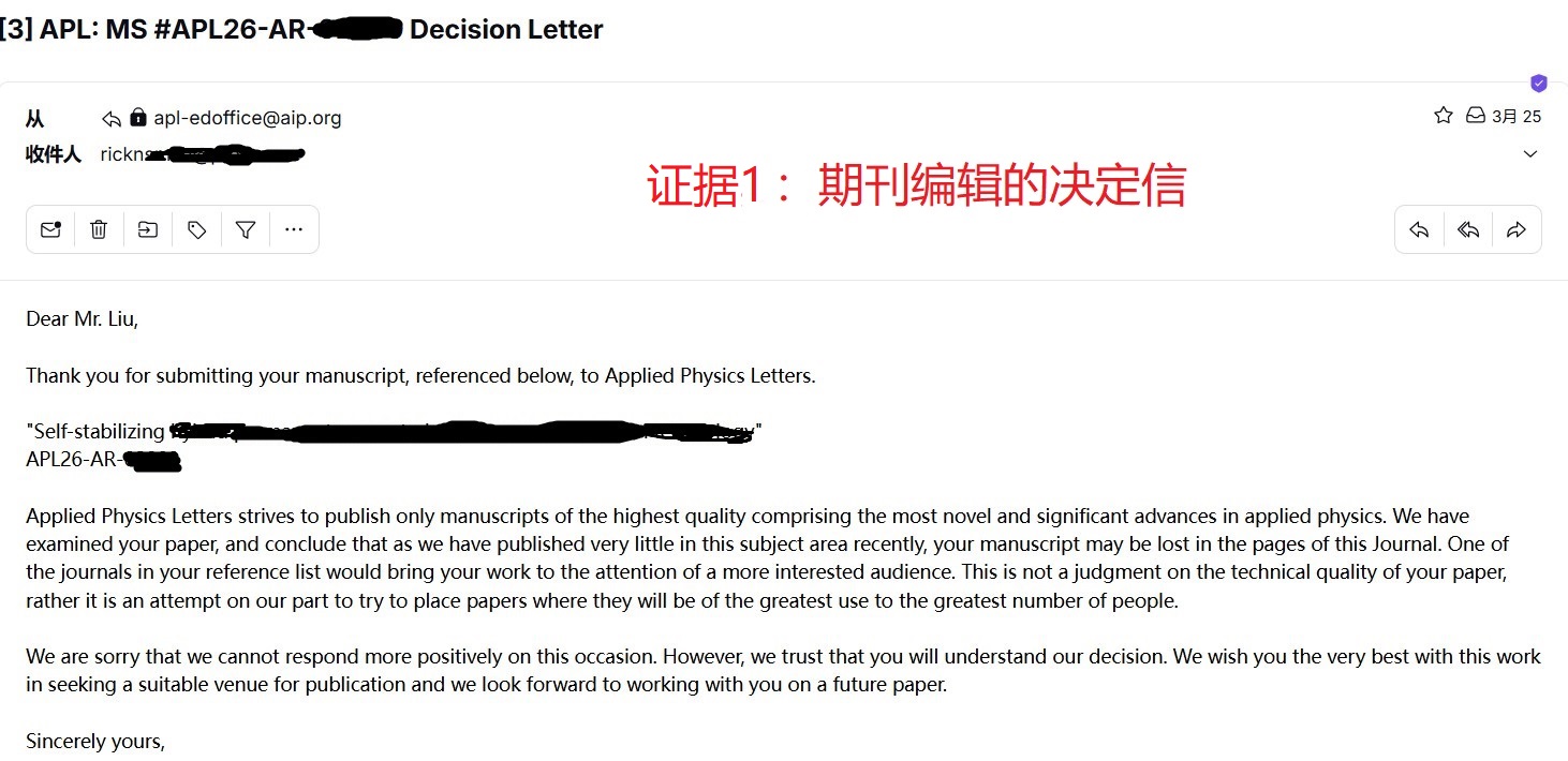 ÎÒÔÚͶ¸åApplied Physics Letters£¨APL£©ÖÐÊܵ½±à¼ÆÛÆºÍÆçÊÓ£¬Õâ·â¾ö¶¨ÐÅ£¨Ö¤¾Ý1£©Ã÷ȷ˵ÎÒµÄÎÄÕÂÖÊÁ¿¶¼´ïµ½APLµÄ±ê×¼£¨This is not a judgment on the technical quality of your paper£©£¬ÎҵijɹûÊÇ´ÅÐü¸¡¼¼ÊõµÄÖØ´óÍ»ÆÆÐԳɹû£¬ÊÇ0µ½1µÄ·¶Ê½×ª±ä£¬²¢²»ÊÇÄÇÖÖ½¥½øÊ½µÄ³É¹û£¬ÎÒ·¢ÏÖÁËеÄÎïÀíñîºÏЧӦ£¬ÎÒÔÚ±à¼ÍƼöÐÅÖÐдµÃ·Ç³£Ïêϸ¡£È»¶øÕâ¸ö±à¼Ëµ´ÅÐü¸¡ÁìÓò×î½ü¡°published very little£¨·¢µÄºÜÉÙ£©¡±£¬ÓÖ˵ÎÒµÄÎÄÕ¿ÉÄܱ»¡°ÑÍû£¨Lost£©¡±ÔÚÆÚ¿¯Ò³ÃæÃ»ÈË¿´¡£Õâ¾ÍÊǾܸåÀíÓÉ£¿ÎÒ»³Òɱà¼ÔÚÆÛÆÎÒ£¬ÎÒ¾ÍÈ¥ËÑÁËÒ»ÏÂ×î½üAPL·¢µÄ´ÅÐü¸¡·½ÃæµÄÎÄÕ£¬·¢Ïֲż¸ÖÜǰ£¨2026Äê1ÔÂ26ÈÕ£©¾Í·¢±íÁËһƪ£¨¼ûÖ¤¾Ý2£©£¬ÕâËûÂèÃ÷Ã÷ÊÇÔÚÆÛÆºÍÆçÊÓÎÒÂð£¿ÊÇÒòΪÎÒÊÇÖйúÈË£¬ËûÃÇÎ÷·½È˽ÓÊܲ»ÁËÖйúÈËÒ²ÄÜ×ö³öÕâÃ´ÖØ´óµÄ¼¼ÊõÍ»ÆÆ£¿ÎÒÕÒ²»µ½ÆäËûÀíÓÉ£¬ºóÀ´ÎÒдПøAPLµÄÁìµ¼²ã·´Ó¦Õâ¸öÇé¿ö£¬½á¹û¼¯ÌåÐÔ³ÁĬ£¬Ã»ÓжԴËÊÂ×öÈκνâÊͺ͵ÀǸ£¬Õâ±íÃ÷ÊÇËûÃǵÄĬÐíÐÐΪ£¬Ò²¾ÍÊDZ༰ÑÖйú×÷Õßµ±Éµ¹ÏÒ»ÑùÆÛÆºÍÆçÊÓÍêȫûÓйØÏµµÄ¡£