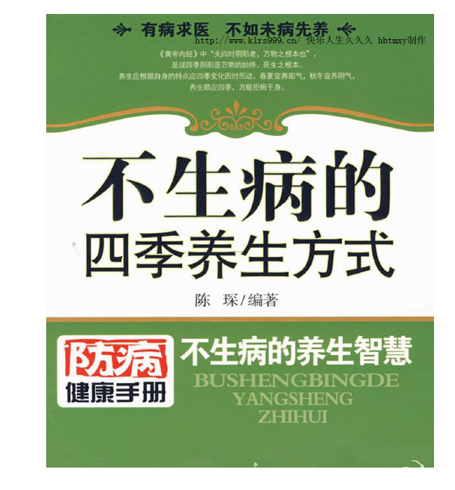 本书以一年四季为主线,紧扣各个季节特点,从饮食养生、疾病预防、科学起居、运动保健、心理调养五个方面提醒读者应该注意哪些问题。笔者力求把每一个健康提醒凝练成一句话,并以此作为每小节的标题,这样更利于读者翻阅和查找。让读者用最少的时间获得最有效的健康信息,是编著本书的宗旨。 希望对大家有用! 下载地址:http://d.namipan.com/d/27fc933ede1fb8c81714bf69aa1d1d9b3cc53d4d82565f01 http://d.namipan.com/d/27fc933ede1fb8c81714bf69aa1d1d9b3cc53d4d82565f01 [ Last edited by wangliuand on 2010-1-9 at 19:31 ] |