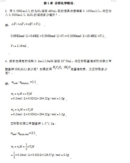 【课后答案】分析化学(武汉大学,第五版)