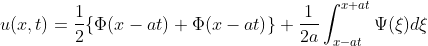[img]http://latex.codecogs.com/gif.latex?u(x,t)=\frac{1}{2}[\Phi(x-at)+\Phi{(x-at)}]+\frac{1}{2a}\int_{x-at}^{x+at}\Psi(\xi)d{\xi}[/img] 第一种输入公式页面的截图如下: ![]() [ Last edited by javeey on 2010-6-22 at 19:31 ] |