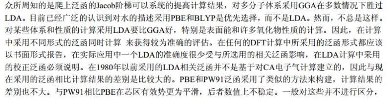 就是LDA适合电子比较均匀的体系,比如体材料 。而GGA适合是电子有梯度的体系,比如说纳米线,slab模型