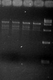 如题,这几天双酶切后做胶回收,照相时看到目的片段下面有很多小的片段,不知道是什么原因。双酶切后不是只能看见两条带吗?我的不知道怎么出现了很多小片段。我用的是Fermentas公司的Sal I和BamH I。体系为30μL的: 质粒DNA 15μL 10×tango 6μL BamH I 1μL Sal I 1μL ddH2O 7μL 昨天又更改了下体系为20μL: 质粒DNA 14μL 10×tango 4μL BamH I 1μL Sal I 1μL 我切的是载体质粒DNA,一个是9000多bp,一个是5000多bp。所以想请大家帮跟忙分析下我的到底哪里出错了,谢谢! |