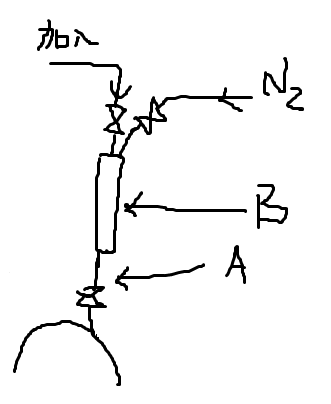考虑到你的管子太细,加入液体不多,为防止毛细现象,建议使用惰性气体吹一下比较好,当然如果你加入的东西比较少可以直接一个阀门后一段管子,再来一个阀门就可以了,不要什么B段和加料管,就从后阀门加,再用氮气吹一下就可以了。