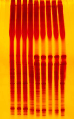 这是两种梯度,但是一直都是上面没条带,而且每次都分成两层是的,上面泳道粗,下面泳道细,到底是哪里有问题啊,求解啊