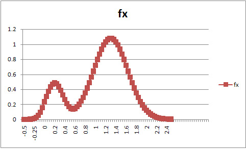 如何使用 统计的方法取得 下图中 概率密度曲线鞍点附近区域的值(且 x>0)