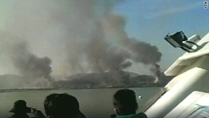 Plumes of smoke billowed from the island of 1,300 people but it was not immediately clear how much damage was incurred. Many residents were fleeing to the South Korean port of Incheon.