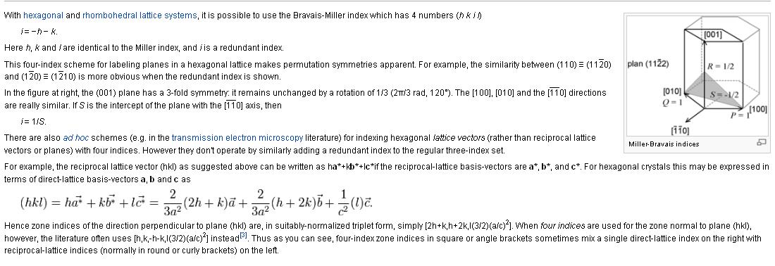 Bravais-Miller index: [h,k,-h-k,l(3/2)(a/c)^2]