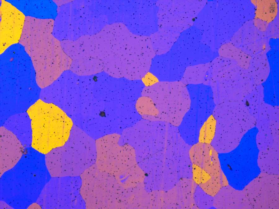 我做的是铝铜合金。有取向的特性,所以做出来会有各色分明的现象。。