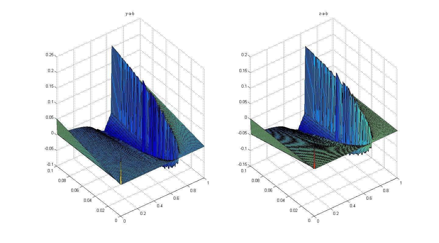 y=z+(7999022433351517/2305843009213693952*z+5509600814111415/72057594037927936*z^3)/(1-a)+1/2*b; z=y+(-4534249478333089/576460752303423488*y-3611543935826555/576460752303423488*y^3+17523/50000*y^5)/a-1/2*b 注:y,z是因变量,a,b是自变量,其中a的变化范围是(0,1),b的变化范围是(0,0.1)。要求分别画出以a,b为自变量轴,y,z为因变量轴的三维图(即y-a-b,z-a-b)。小虫还有一个问题就是让b为固定值,如b=0.01,怎么画出y-a,z-a(其中a的变化范围是(0,1))的二维图? [ Last edited by gzqdyouxia on 2010-12-27 at 19:37 ] |