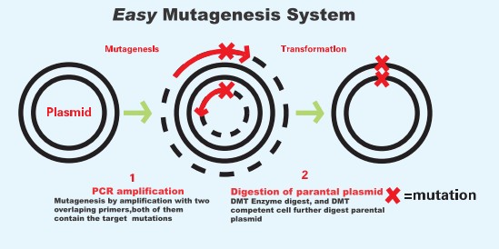¸Ã·½·¨£¬ÒÔÐèҪͻ±äµÄÖÊÁ£ÎªÄ£°å£¬Éè¼ÆÒ»¶ÔÒýÎÀ©ÔöÕû¸ö»·×´ÖÊÁ££¬Éè¼ÆÒýÎïµÄʱºòÒýÈëÍ»±ä£¬È»ºóÀûÓÃDpn IÏû»¯Ä£°å£¬ÓÉÓÚDpn IÖ»ÄÜÄÚÇм׻ù»¯µÄÖÊÁ£Ä£°å£¬¶ø²»»áÏû»¯À©ÔöµÃµ½µÄÖÊÁ££¬½«´¦Àí¹ýµÄÀ©Ôö²úÎïת»¯¸ÐÊÜ̬ϸ°û£¬È»ºóɸѡͻ±ä³É¹¦µÄÖÊÁ££¬Í»±äÂÊΪ90%