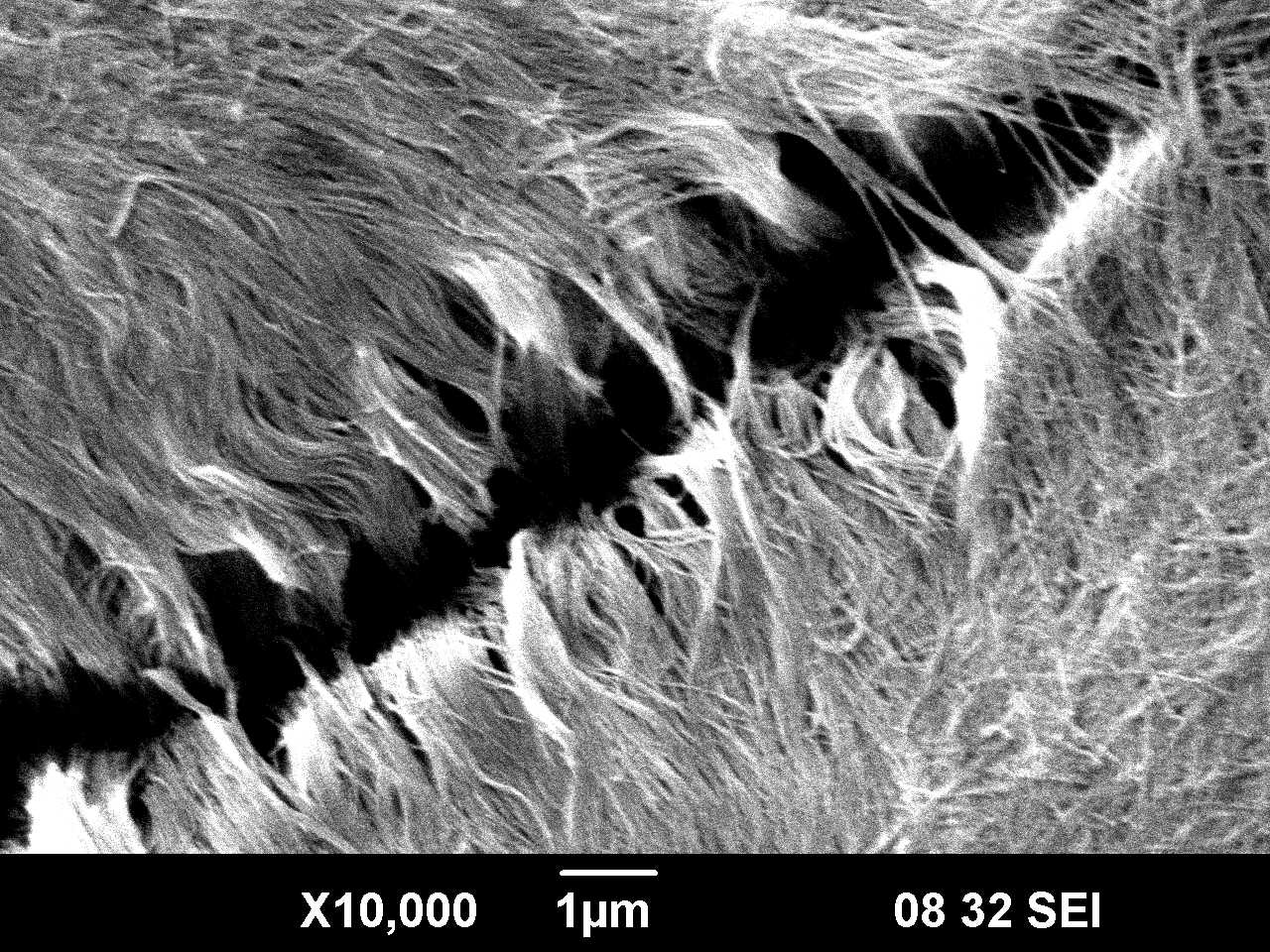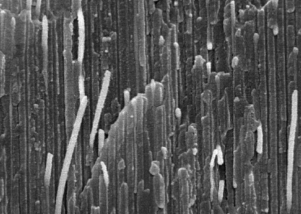 我在Nanoc letter上见到过氧化铝纳米线,就是NaOH腐蚀过后,和这非常相似,关键是我打的能谱里银含量特别少,仅1%左右,主要是铝和氧!而且这是我垂直于样品照的,不是侧面。