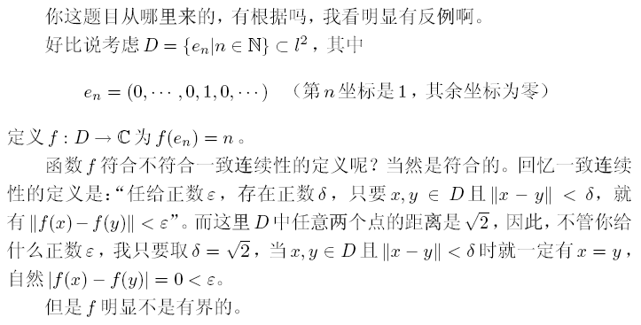 【求助】求证,非线性泛函中一致连续算子是有界的