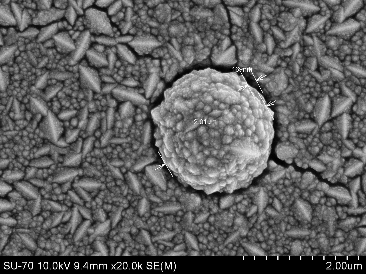 这是我在载玻片上镀的Cu/Al双层膜的表面,Cu在底层,Al在表层,采用的方法是中频磁控溅射,常温沉积,Ar气环境,气压0.16Pa,溅射电压约500多伏,基片负偏压100VDC,200VAC,表面出现如图所示的突起,似乎重重叠叠多层,请问这个情况的原因是因为污染物掉落导致的还是其他原因?我用其他工艺镀的膜也出现了类似的情况
