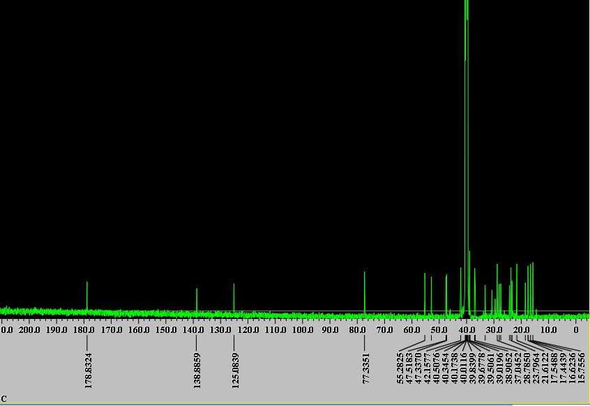 化学位移178是28位羧基,这个我看到过的一般游离羧基是180多,成酯后降到177左右。