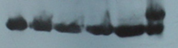 刚刚做完western,显影结束后发现前5个条带都好好的,第六个条带却出现了上下两个条带。哪位高手帮忙分析一下。以前从没出现过这种情况。很是奇怪。???????