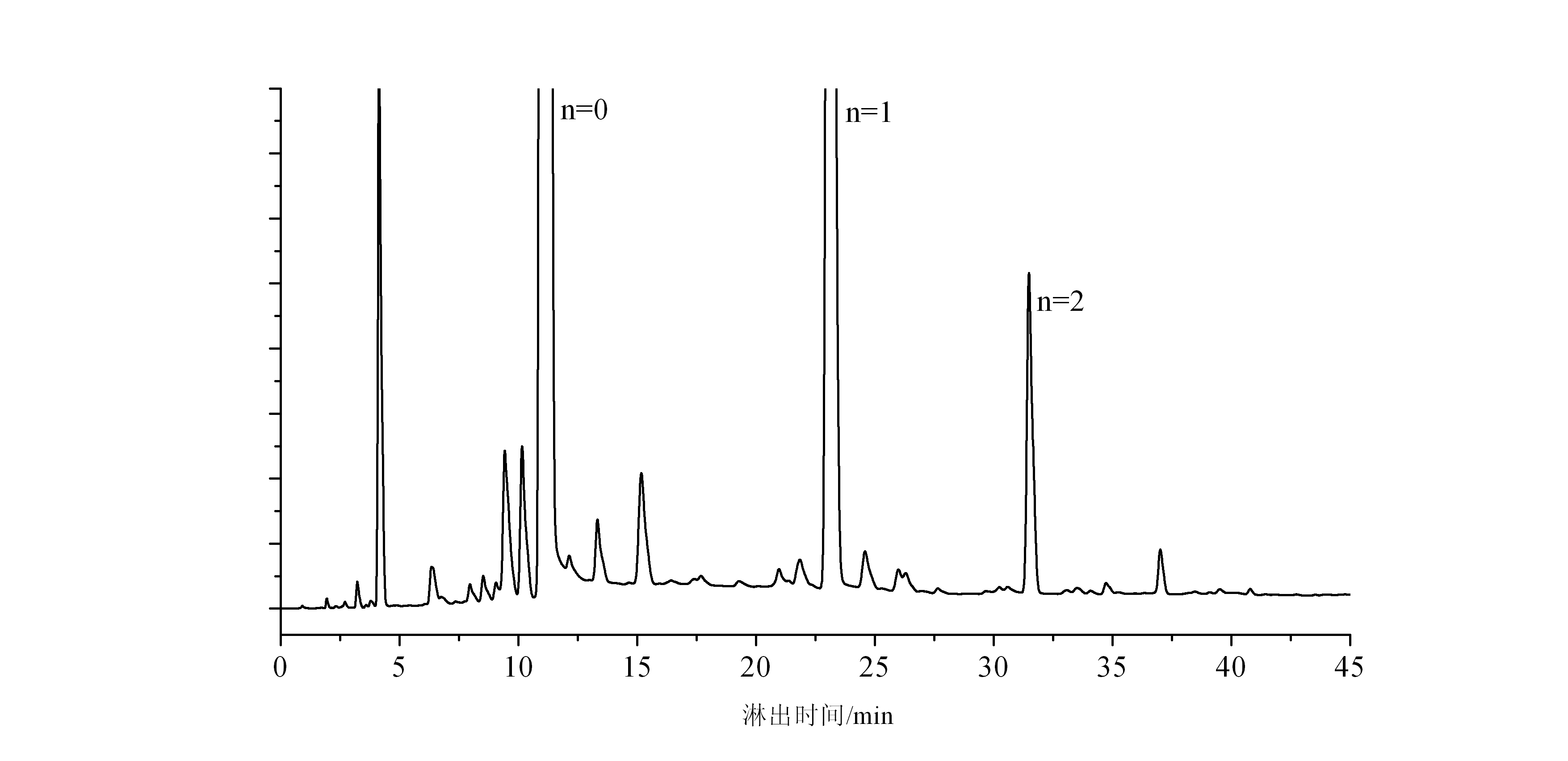 可以肯定的是图中标示的三个峰为聚合度n=0、1和2的组分。