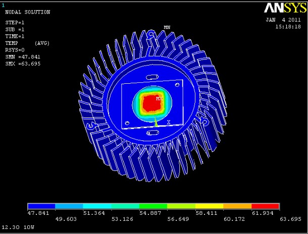 问题1.我现在模拟了一个三维实体模型的散热 想知道这个模型内部中心点的确定温度,请问应该怎么定义呢 (稳态分析) 问题2.如果我是做的瞬态分析,想知道三维实体内部中心点温度随时间变化曲线,应该怎么找到这个点呢 多谢各位大侠指点 下面是我分析的那个模型 |