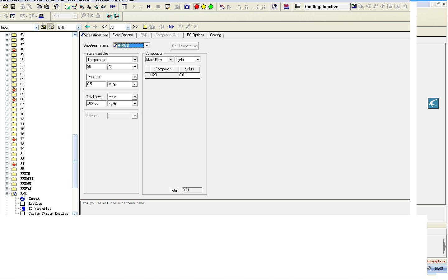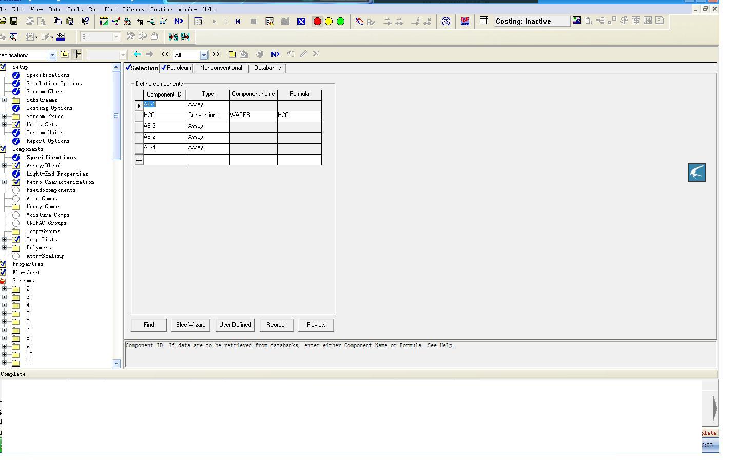 大侠们,我自己在学习aspen,现在遇到了一个这样的问题:在components里定义了一个blend和三个assay变量,但在进料物流股中除了组分H2O以为就没有了其他任何组分,这是何原因?初学哈,提的问题如果很弱,敬请谅解!呵呵。第一个图截错了,AB-1是blend变量。