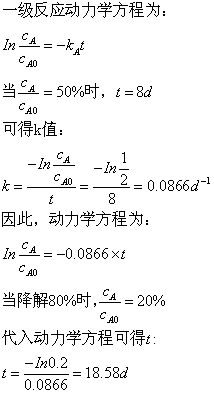 1. 在25摄氏度下,一级动力方程,污染物好氧降解的半衰期是8天,求同温度下降解80%所用的时间。