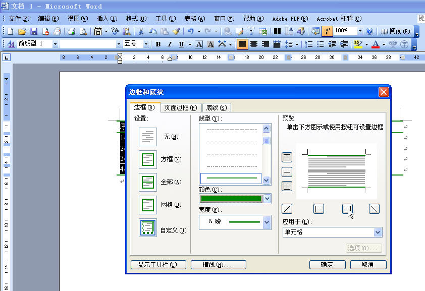 比如你要给某个单元格的左边加竖线,选单元格后,右键进入边框和底纹,对话框点击左边线即可。给多个单元格加把这些单元格都选上就行。