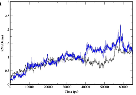 这个图是动力学模拟轨迹的rmsd图。你要两个蛋白之间的偏差值,只有一个值,怎么作图,不明白